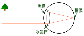 目の調節をゆるめた状態で、遠くからの平行な光が網膜上で焦点を結ぶことができる眼です。